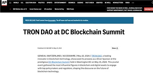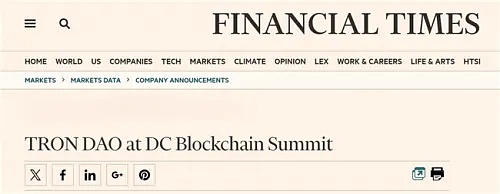 金融时报、美联社等聚焦波场TRON出席华盛顿区块链峰会