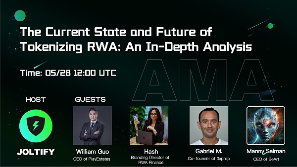 5月28日,RWAS品牌总监Hash受邀出席《现实世界资产代币化 (RWA) 的现状和未来》推特国际直播,PalyEstates、RWA Finance、0Xprop、BeArt等项目嘉宾就RWA发展进行了深入交流,大家一致认为任何以 RWA 为导向的资产都引起了金融人士关注,未来RWA是长期研究的Web3热点。