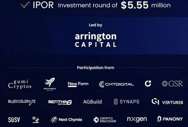 IPOR 在 2022 年完成了 555 万美元融资,主要机构包括由 Arrington Capital、gumi Cryptos Capital、Space Whale Capital、New Form Capital、CMT Digital、C² Ventures、GSR、Bloccelerate、Mentha Partners、AG Build、Synaps、g1 vc、SOSV、Stateless VC、Next Chymia、Crypto Discover、NxGen、Panony 等。