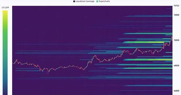 来自监控资源CoinGlass的最新数据显示,BTC/USD 正在蚕食70,000 美元以上的间接流动性,截至撰写本文时,附近几乎没有阻力。