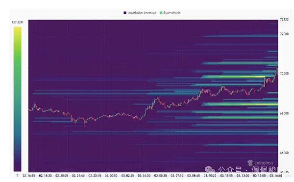 来自监控资源CoinGlass的最新数据显示,BTC/USD 正在蚕食70,000 美元以上的间接流动性,截至撰写本文时,附近几乎没有阻力。