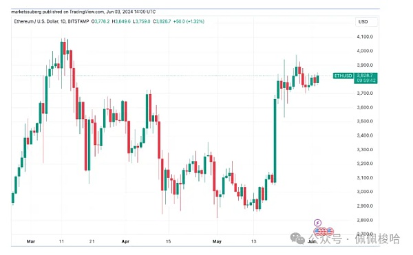 华尔街开盘时,ETH/USD 创下月度新高3,849 美元。
