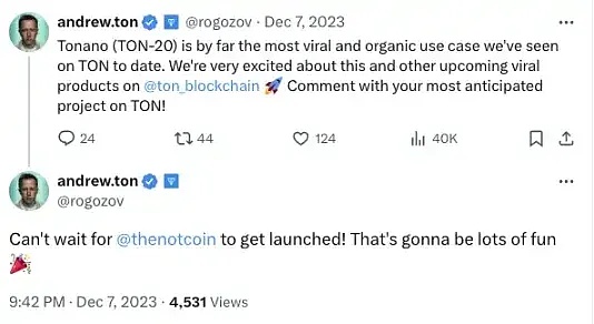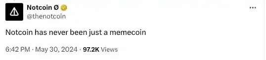 正如ACcapital创始合伙人@TeddyAC01所言,Notcoin给Ton带来了流量,Ton也开始向Notcoin倾斜运营资源。不过,关于「NOT meme能否助力TON」的讨论已经很多,而Notcoin官方则表示自己「从来都不只是一个模因币」。