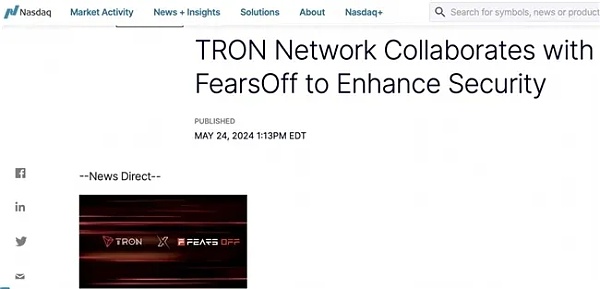 对于此次合作,FearsOff首席运营官Marwan Hachem表示:“无论就月活用户数还是 USDT交易量而言,波场TRON都居于全球顶尖。我们很高兴能与波场TRON达成合作,帮助其进一步加强网络安全。这一积极合作能够助力我们打造安全的Web3生态。”