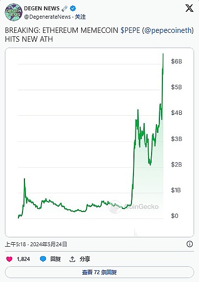 “根据我们目前对 Pepe Coin 价格的预测,到 2024 年 7 月 4 日,Pepe Coin 的价格可能会上涨 225.30%,达到 0.00004614 美元。根据我们的技术指标,当前情绪看跌,而恐惧与贪婪指数显示为 73(贪婪)。在过去 30 天内,Pepe Coin 录得 14/30(47%)的绿色走势,价格波动率为 24.97%。