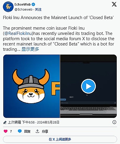 此外,Floki Inu 最近推出了一款 Floki Inu Telegram Bot。它旨在为所有 Web3 爱好者简化加密货币交易。该机器人将在增强 Floki 的知名度方面发挥关键作用,帮助该代币在长期内获得额外的支持和力量。