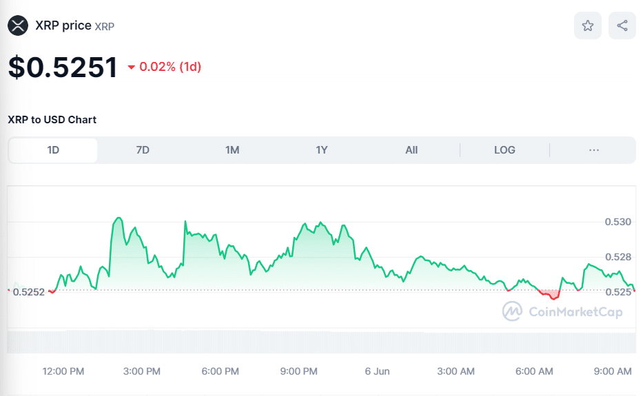 与此同时,截至发稿时,瑞波币支持的加密货币小幅下跌 0.02%,至 0.5251 美元。XRP的24 小时最高价和最低价分别为 0.5245 美元和 0.5307 美元。