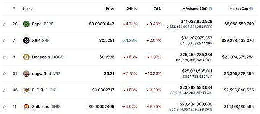 PEPE 创历史新高 30 天交易量超越 XRP、Shiba Inu