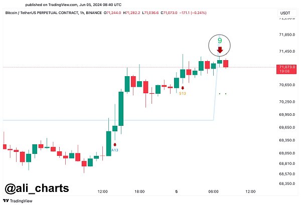 尽管出现了 TD Sequential,但比特币仍未放松,因为该资产已攀升至 71,600 美元以上。