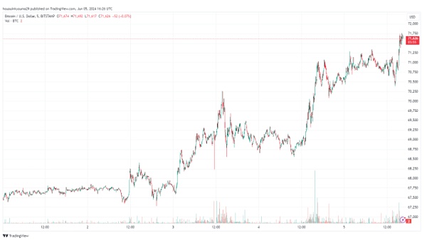 从图表中可以看出,TD Sequential 最近已完成比特币的设置阶段,并出现了绿色蜡烛。这一信号出现之际,比特币自 5 月中旬以来首次突破了 71,000 美元的水平。
