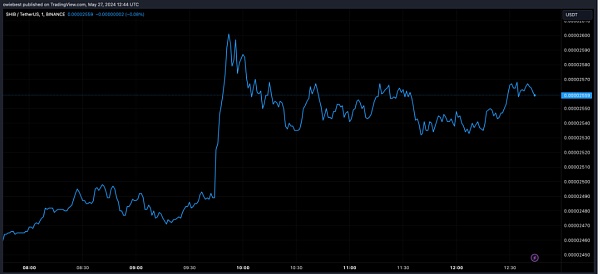 截至撰写本文时,根据CoinMarketCap的数据,SHIB的价格约为0.00002444美元,在过去24小时内下跌。
