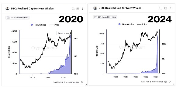 “事实上,大型投资者正在向比特币投入约 10 亿美元,与 2020 年从 1 万美元涨至 7 万美元之前的情况类似。2020 年,比特币在 1 万美元左右徘徊了 6 个月,链上活动活跃,后来以场外交易的形式出现,”报告透露。