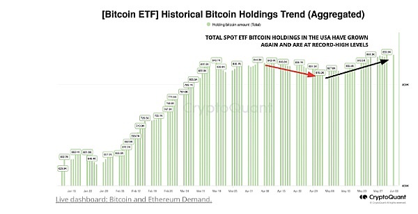 CryptoQuant 同样强调了美国现货比特币交易所交易基金(ETF)的资金流入不断增加,这些基金在 6 月 4 日的净流入量创下第二高。