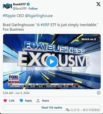 Ripple 首席执行官布拉德·加林豪斯 (Brad Garlinghouse) 对以太坊现货 ETF 持谨慎乐观的态度,最近在 Fox Business 露面时,他为 XRP ETF进行了辩护。