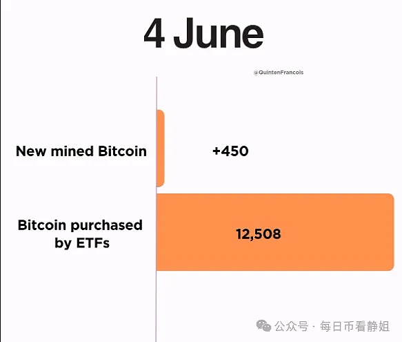 与此同时,由于 ETF 购买的比特币数量远远超过新开采的比特币数量,比特币需求持续飙升。当需求超过供应量 10 倍以上时,这就是价格呈指数级上涨的秘诀。