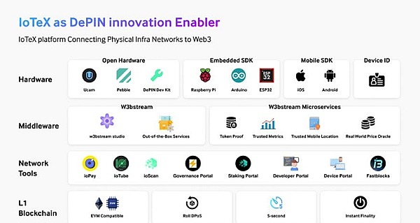 IoTeX(IOTX)作为DePIN模块化Web3基础设施平台的佼佼者,率先将智能设备与现实世界数据融入区块链。作为去中心化物理基础设施网络(DePIN)技术的领军者,IoTeX既可实现全面部署,也能将模块灵活集成至现有框架。