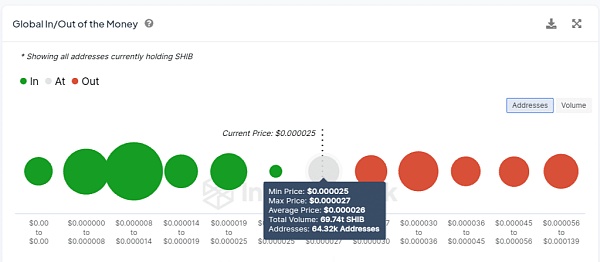具体来说,在这一关口,64,320个地址以平均 0.000026 美元的价格购买了 69.74 万亿 SHIB 代币。每当 Shiba Inu 重新测试 0.000026 美元时,这些地址就会抛售其持有的代币,从而加剧抛售压力。