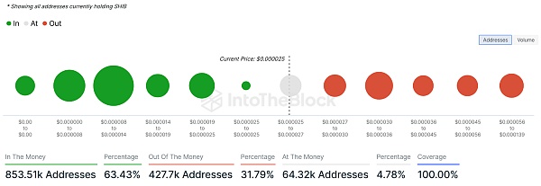 然而,根据 IntoTheBlock 的数据,0.000026 美元的门槛代表了柴犬与更高水平之间的一堵巨大卖墙。