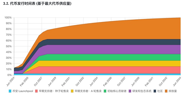 种子轮和A轮投资者的代币设有3年的限制期,意味着这些投资者的代币将在2027年6月之前逐步释放完毕。