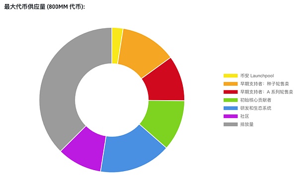 从代币分配方案来看,币安 Launchpad 和社区奖励一共占代币总量的 50%,其余分配给投资者、项目团队及开发者等。