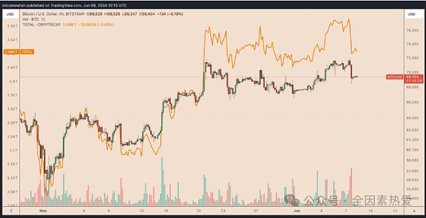 从技术角度来看,比特币今日的下跌是在测试了其 70,000 美元左右的临时阻力位后开始的。自 3 月中旬以来,该加密货币一直未能果断收于上述水平之上。