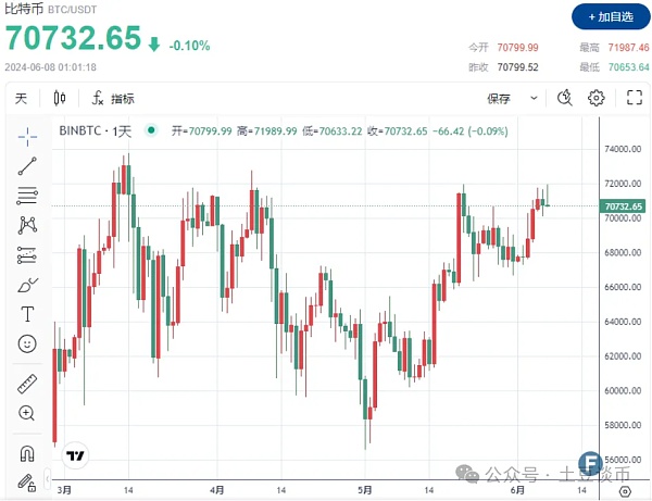 截至发稿,该加密货币的交易价格为70,732.65 美元。