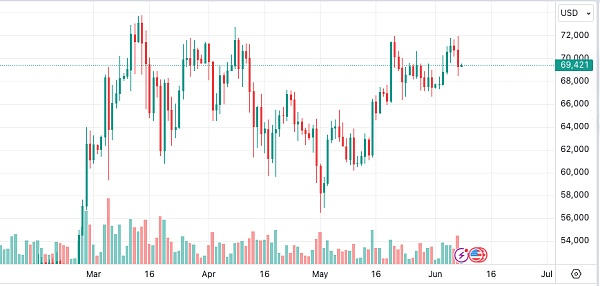 周五晚间,就在比特币眼看即将突破 7.2 万美元关口之时,大超预期的美国 5 月非农数据使得比特币在数分钟内从 7.2 万美元附近跌至 70600 美元附近。之后虽然小有反弹,但从香港事件周五晚 22:00 至昨日 2:00 的 4 个小时内,比特币从反弹的最高点 71500 美元附近暴跌至最低约 68400 美元,在撰文时已回升至 69400 美元附近。