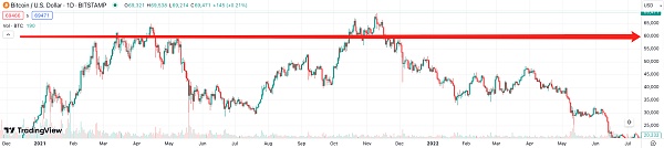 笔者曾在过去的文章中阐述了一个观点,就是比特币在突破 2021 年底 6.9 万美元左右的高点后没有很快出现大幅上涨,而是在前高附近开启了震荡,这可能不是一个乐观的信号。
