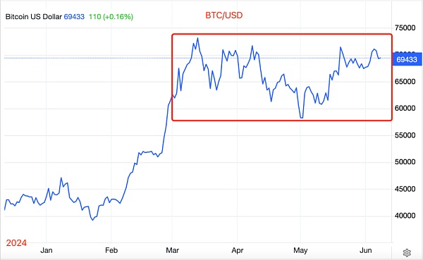 华尔街机构纷纷配合数据表现,乖乖地把降息预期推迟到了今年年底11月份。我看着自3月以来横盘至今的BTC,不禁陷入沉思。