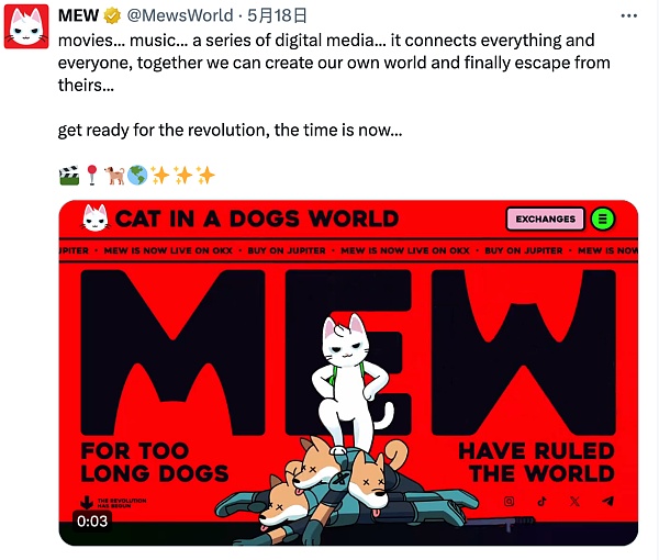 这些举措在短短时间内便取得了显著成效,MEW的市值迅速攀升,成为Meme币领域的佼佼者。跨界合作:MEW与LOCUS携手共创未来然而,MEW不仅仅满足于在Meme领域的成功,它还积极寻求与其他领域的合作机会。近日,MEW宣布与韩国顶级动画工作室LOCUS达成战略合作,共同打造一系列全新的3D动画作品。这一举措标志着MEW正式进军全球娱乐产业,同时也为Meme文化注入了新的活力。