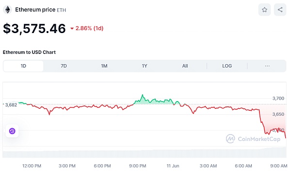 与此同时,ETH 价格在过去 24 小时内下跌 2.86% 至 3,576.45 美元,每日最低和最高价格分别为 3,571.27 美元和 3,711.43 美元。以太坊的市值为 4,278.4 亿美元,过去一天下跌 3.23%。