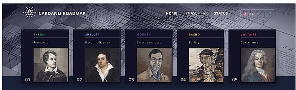 根据官方显示,Cardano 路线图共有五大发展阶段,也称为「时代」,都是以艺文和科学领域的著名人物命名,依序分别是「拜伦(BYRON)」、「雪莱(Shelley) 」、「高更(Goguen)」、「芭蕉(Basho)」和「伏尔泰(Voltaire)」。