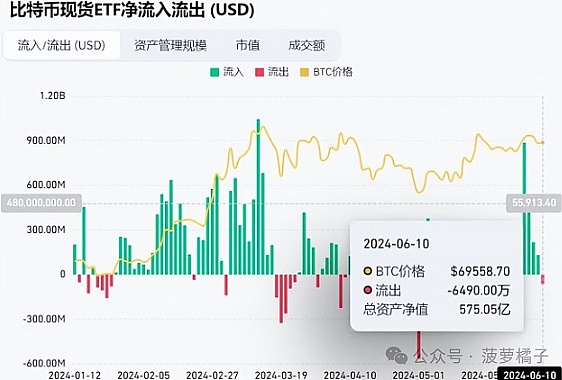 美国现货比特币ETF昨日(6月10日)净流出932枚,价值6490亿美元。