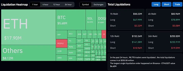 根据CoinGlass的数据,此次突然回调导致所有加密资产的杠杆衍生品交易头寸被清算超过2.5亿美元。这是继上周五4亿美元清算后,一周内第二次出现大规模杠杆清算。当交易者未能满足保证金要求或没有足够资金维持仓位时,就会发生清算,导致交易所关闭杠杆仓位,交易者的初始资金或“保证金”部分或全部损失。