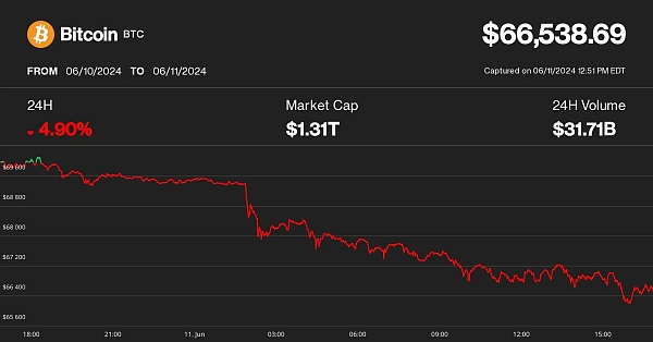 由于交易员为周三即将公布的美国关键通胀报告和美联储会议做准备,周二加密货币市场进一步下跌,比特币(BTC)跌至66,000美元附近。比特币开盘价接近70,000美元,随后在美国交易时段触及三周低点66,170美元。尽管随后小幅反弹至66,500美元附近,但过去24小时内仍下跌近5%。