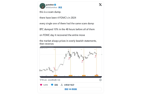 市场观察人士指出,抛售期间出现了一些积极迹象,可能预示着市场将快速复苏。匿名加密货币分析师Gumshoe在X的帖子中指出,比特币在今年FOMC会议之前曾多次回调,但之后不久就扭转了走势。