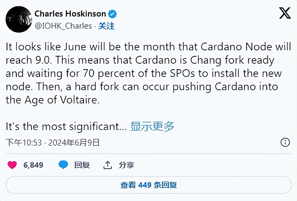 在详细谈到分叉部署时,ADA 创始人 Charles Hoskinson 此前曾通过 X 分享了详细的消息。ADA 首席执行官重申了 Chang Fork 集成如何能够将 ADA 生态系统转变为一个全新的水平。
