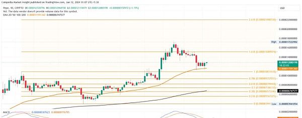 随着日线图的回调阶段,PEPE价格走势表现出对50天EMA的重新测试。在重新测试之后,模因币的价格趋势进入了水平震荡的阶段,过去四天没有出现明显的趋势。