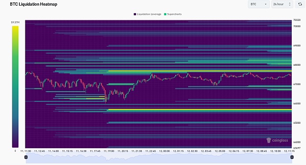 在撰写本文时,CoinGlass 数据显示,流动性在下行方面约为 65,700 美元,而 67,700 美元成为进一步突破的主要障碍。