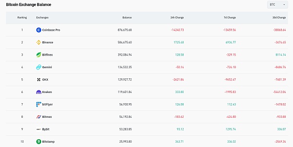 截至撰写本文时的 24 小时内,Coinbase Pro 上的 BTC 总余额减少了 14,420 BTC(9.72 亿美元),这是继本月早些时候Cointelegraph报道的现有交易所余额减少之后的又一减少。