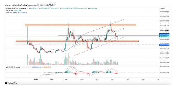这样一来,通往更高目标的道路就变得清晰了,如果多头保持强势,那么 PEPE 价格甚至可能在未来几天创下接近 0.000018 美元的新高。与此同时,BONK 价格也表现出类似的模式,因为 memecoin 似乎有望在本月创下新高。
