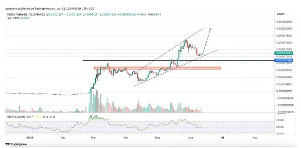 Pepe 的价格在经历了最近从 0.000014 美元的回调后一直在区间内交易。虽然市场正在经历 FOMC 之前的回调,但PEPE 价格一直保持着显著的强势。由于价格仍处于上升平行通道内,看涨延续的可能性仍然很高。然而,空头正努力将水平拖至 0.00001 美元以下,但最近回升至 0.000012 美元以上已经改变了这种观点。