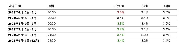 同时,剔除食品和能源成本后的5 月核心CPI 同比增长3.4%,低于预期的3.5% 和前值3.6%,创下近三年多以来最低水平,显示美国通膨降温持续进行中。