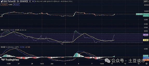 在 3 小时价格图上,UNI 价格显示出良好的趋势,反映出收购消息传出后投资者的积极情绪。最新区间收于 10.441 美元,该代币 6% 的涨幅表明市场反应强劲。相对强弱指数 (RSI) 接近超买区域 64.60,表明如果市场认为 UNI 估值过高,未来价格可能会盘整或回调。