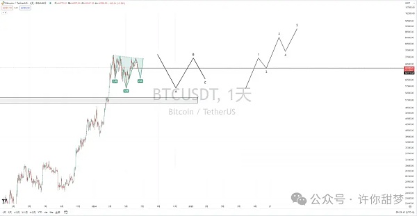 是跌到61000左右止跌,形成一个头肩底上涨中继,这样对后市市场发展非常好,两种走势已经画了好多天了