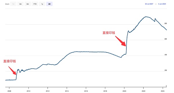 对市场而言,直接扩表印钱效果才是立竿见影的,比如2008年底美联储采取QE无限量化宽松,比如2020年美联储“直升机撒钱”,股市立刻反弹,走出牛市。