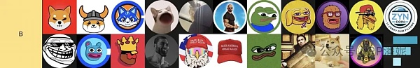 例如:shib, popcat, mother, daddy, apu, zyn, brett, maga, bome, dog, anubis, ftt。