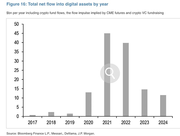 摩根大通:今年加密市场资金流入下修至120 亿美元