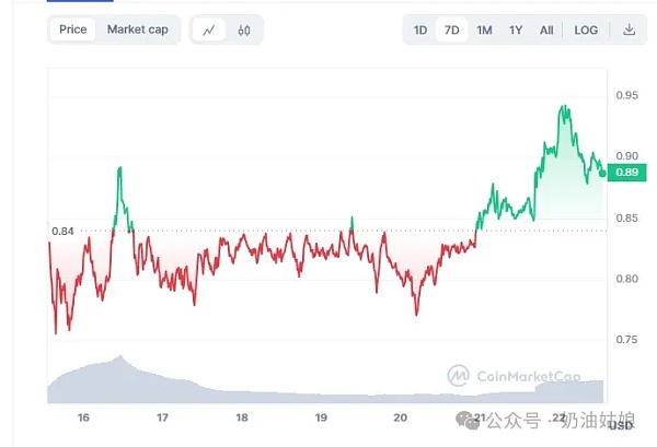 尽管有这种看涨信号,但 MACD 柱状图显示看涨势头正在减弱,如缩短的绿色条所示。这表明,尽管出现了暂时的复苏,但市场情绪仍然谨慎。值得关注的关键阻力位在 0.90 美元左右,如果持续突破这一水平,可能预示着更强劲的看涨趋势。