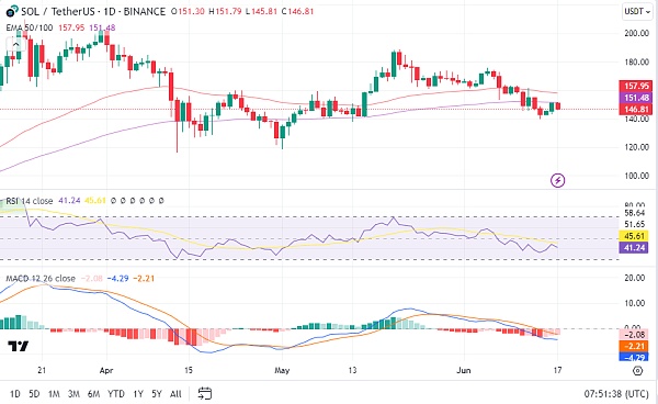 最近,SOL 跌破了关键的 150 美元支撑位,这一走势令许多投资者感到担忧,因为这一水平既是技术支撑位,也是心理支撑位。跌破这一水平导致看跌情绪进一步加剧,表明下跌趋势仍在继续。